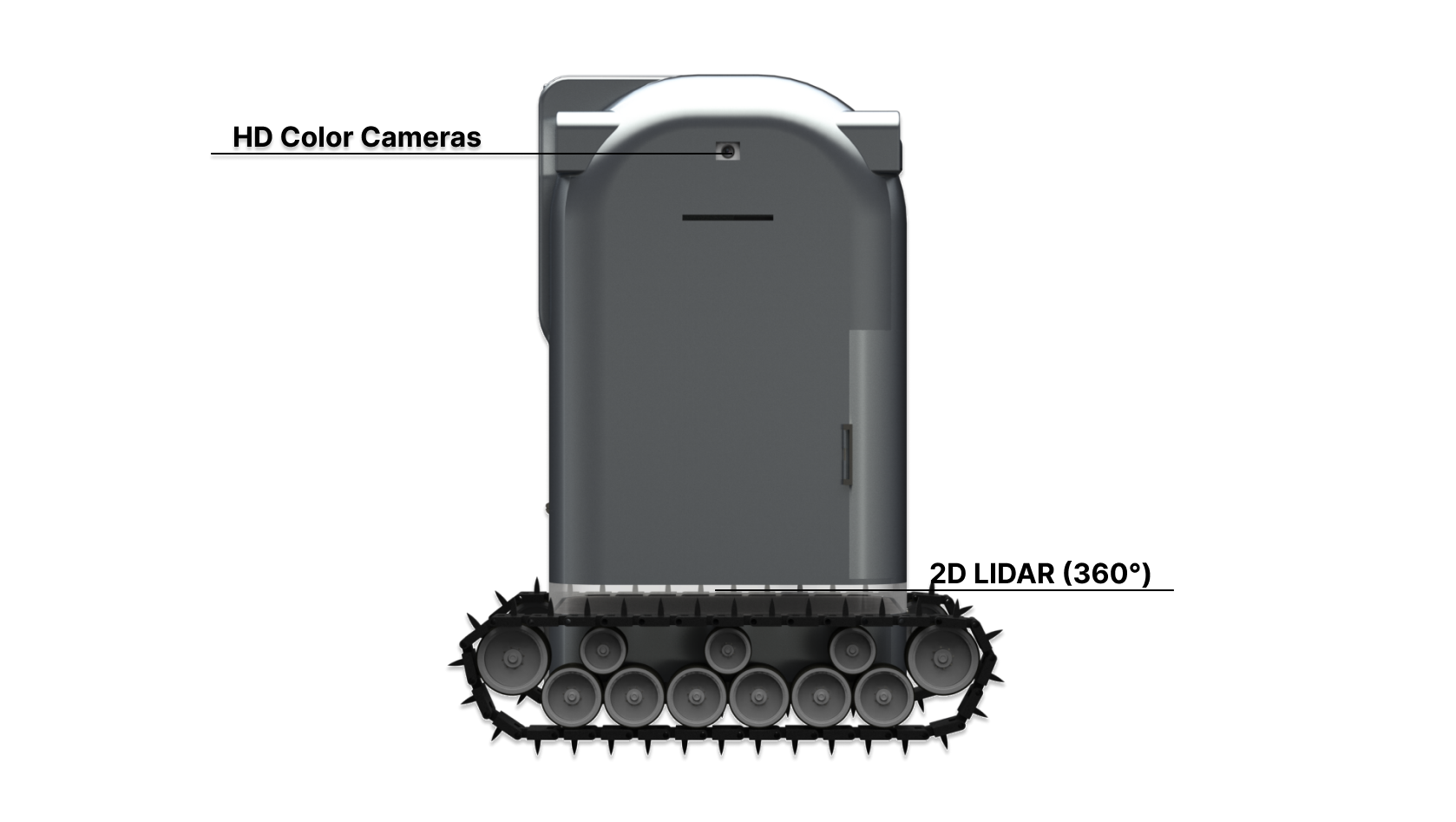 HD color cameras are employed for facial recognition, path recognition, and backup obstacle avoidance, working in tandem with 2D LIDAR for efficient sensor fusion.